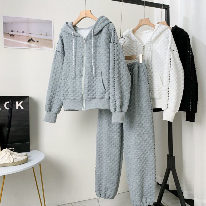 ニット 配色 ツーピース パンツ+半袖セーター 無地