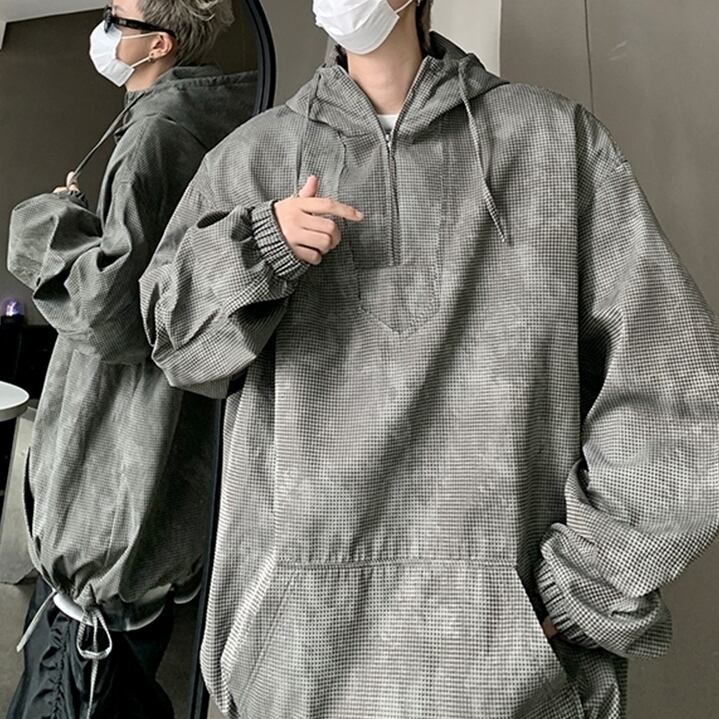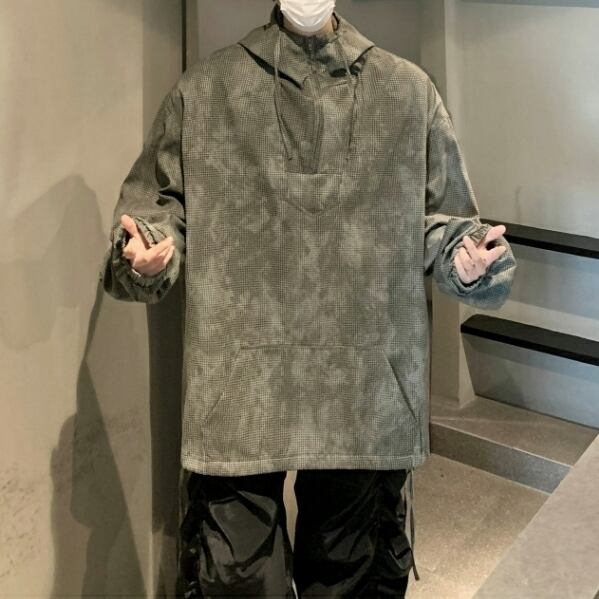 ハーフジップ マウンテン パーカー ルーズ メンズ タイダイ